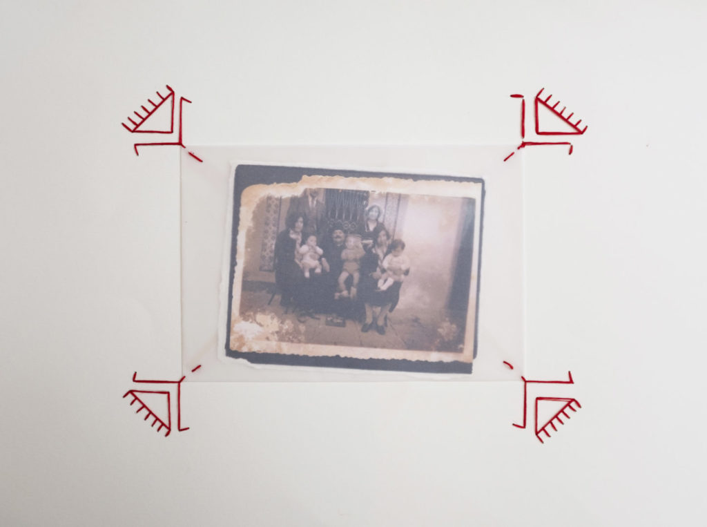 Héla Ammar, Portrait de famille 3, 2022. Photography, envelope in tracing paper and embroidery, 43 x 36 cm. Courtesy of the artist.
